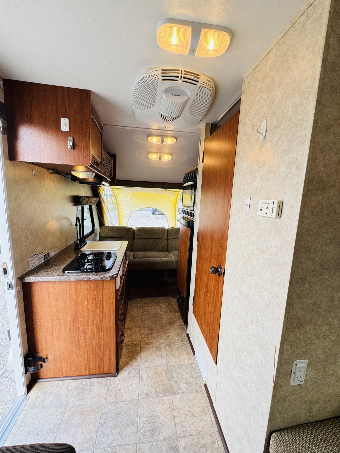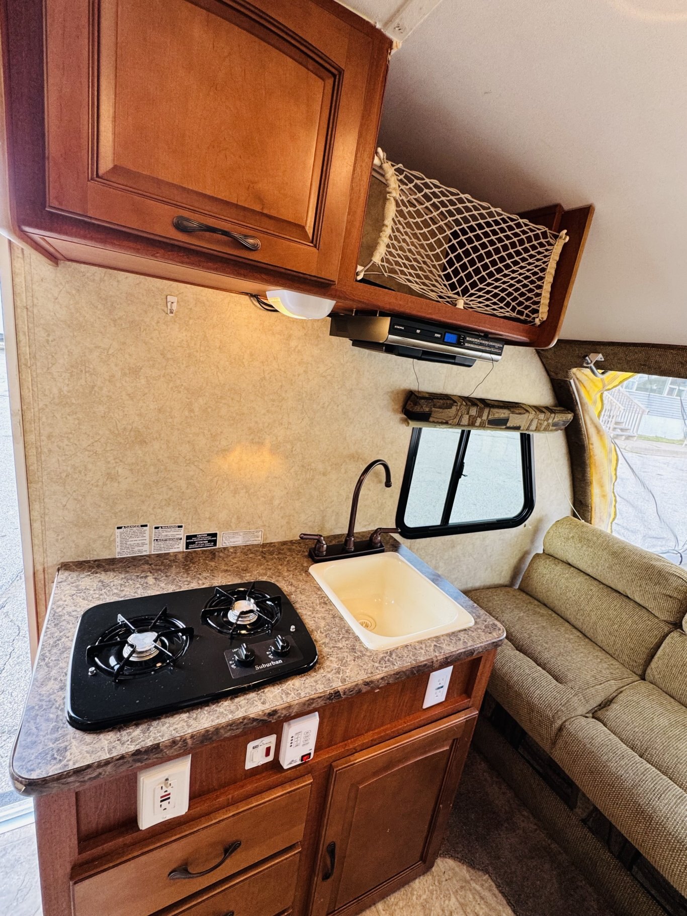 ✅ Kitchenette – Fridge, Stove, Microwave & Sink