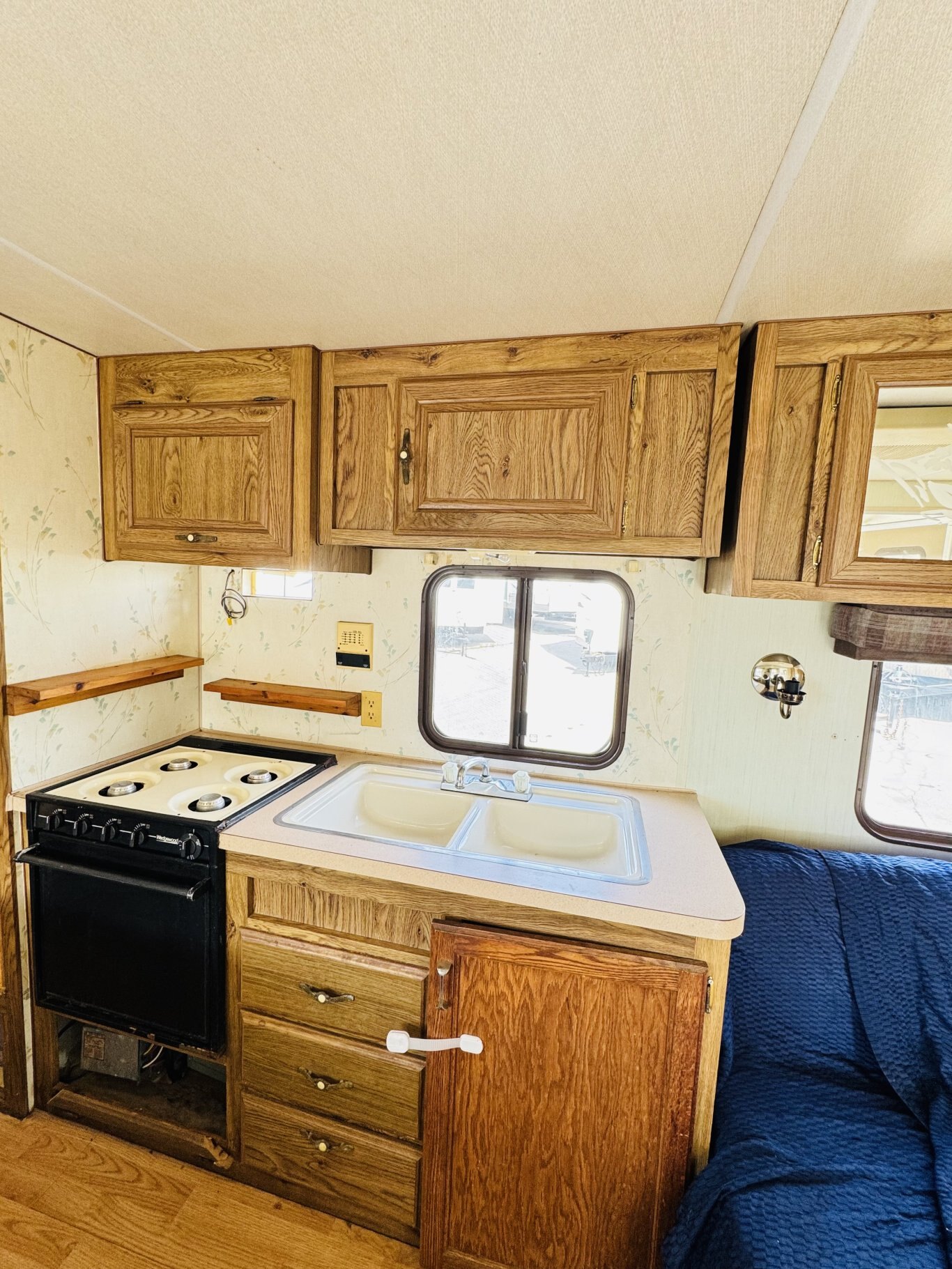 ✅ Kitchen with 4-burner stove, oven & plenty of storage
