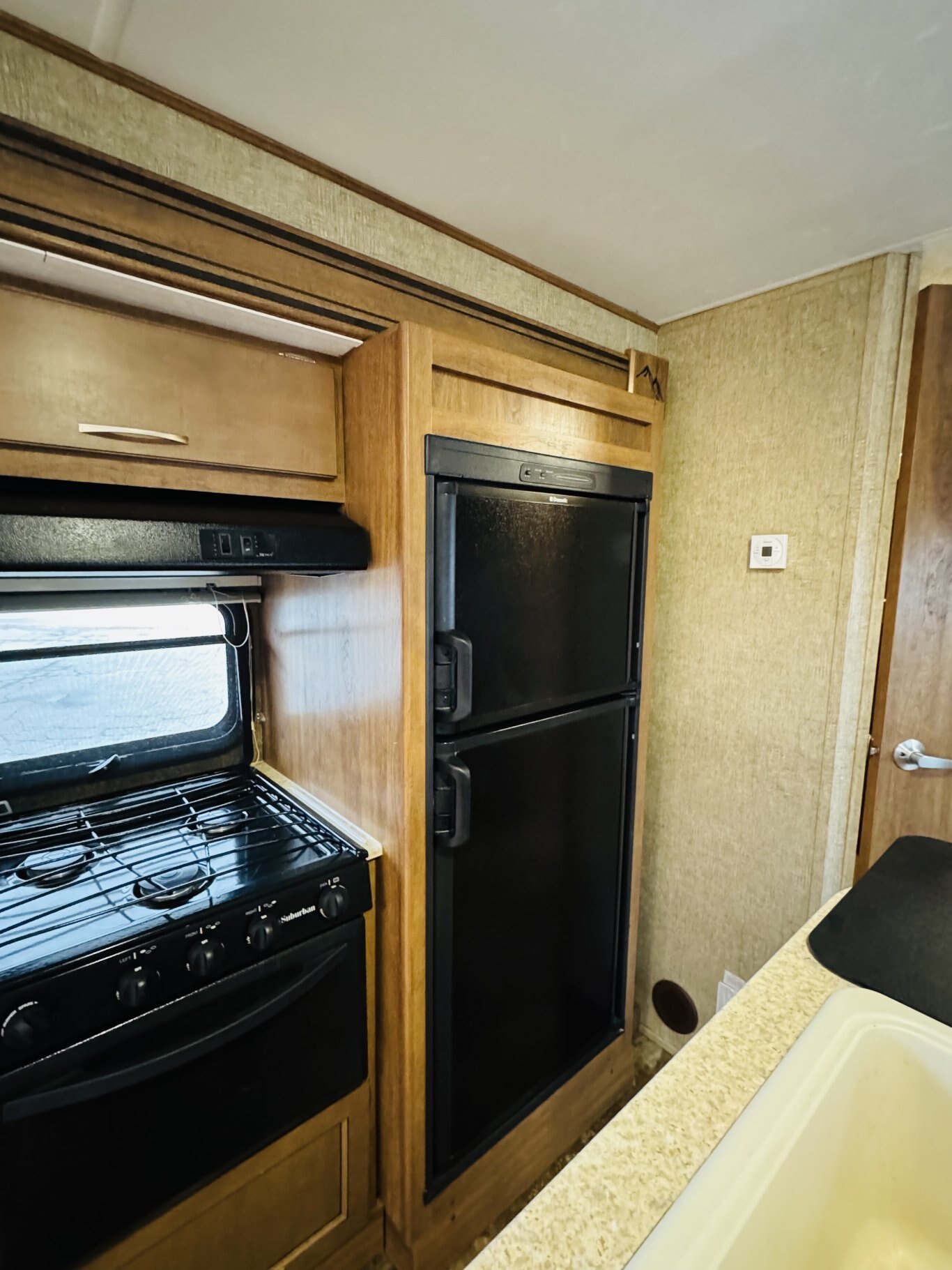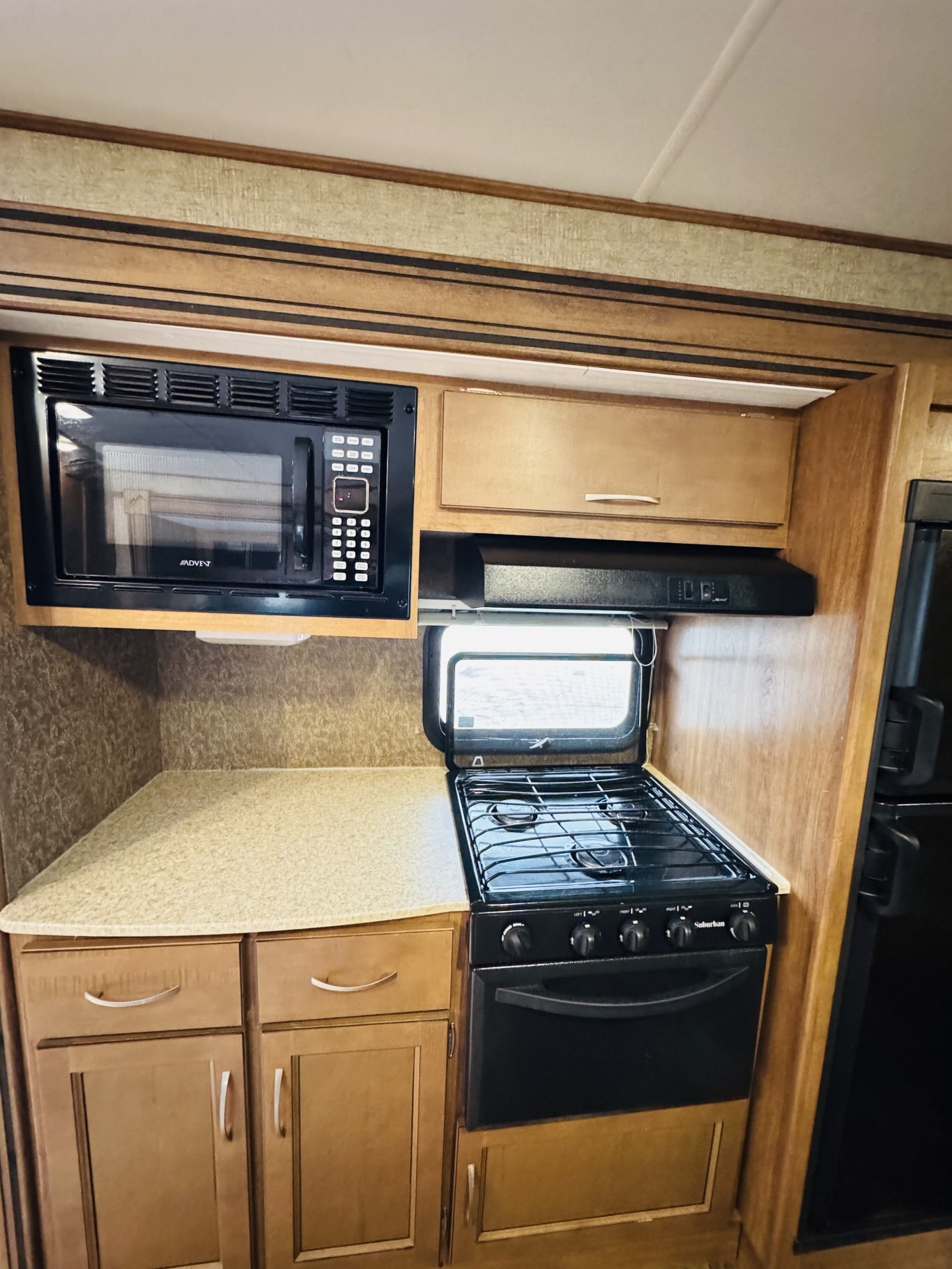 ✅ Kitchen: 3-burner stove, oven, microwave, fridge, deep sink