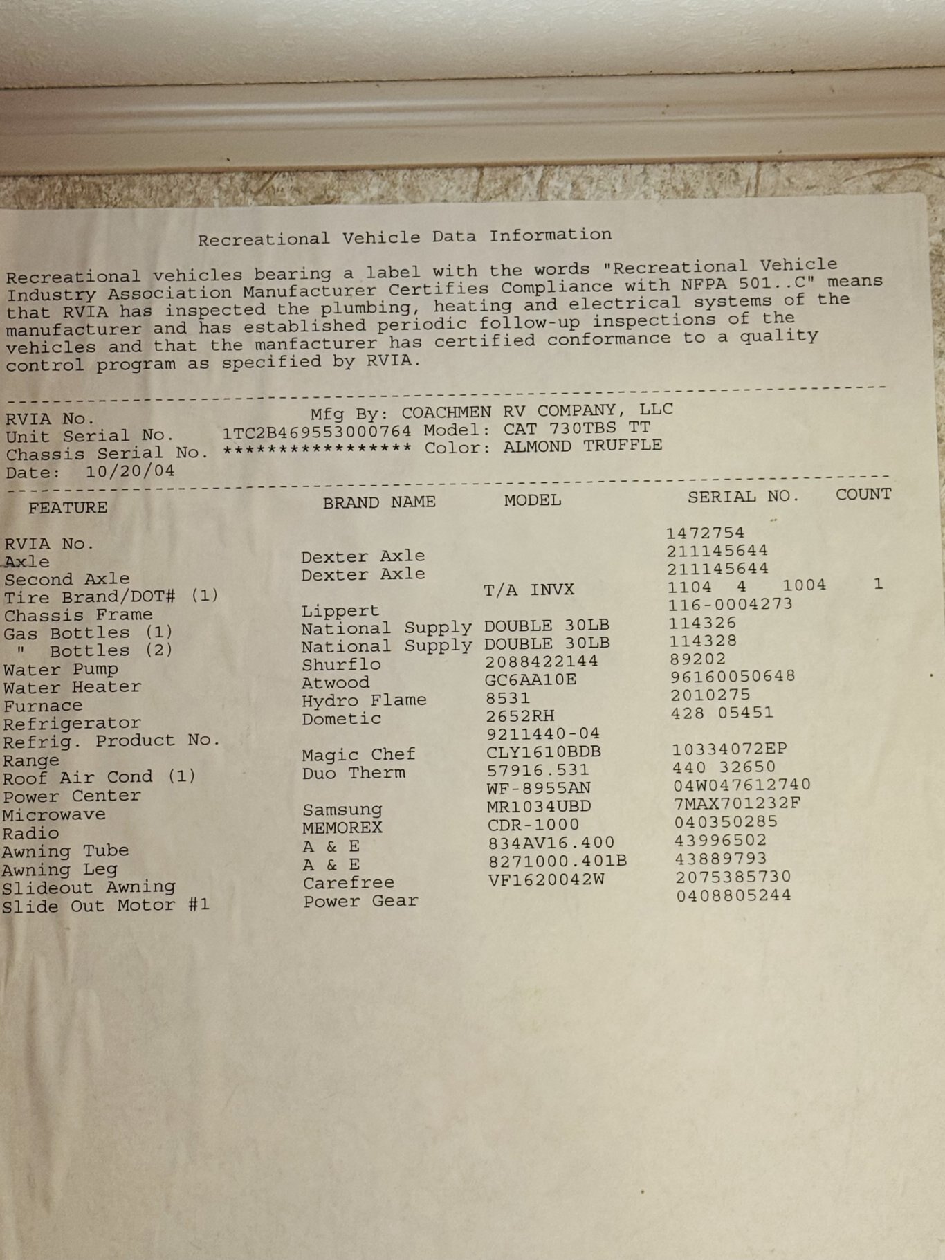 ✅ Year/Model: 2005 Coachmen Catalina 730TBS